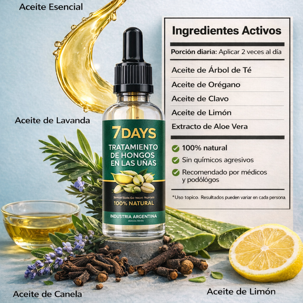 7 Days es un tratamiento 100% natural🌱 formulado con una poderosa combinación de Flower Oil, Aceite de Romero y Tea Tree Oil, ingredientes reconocidos por sus propiedades antifúngicas, antibacterianas y regenerativas.🧪